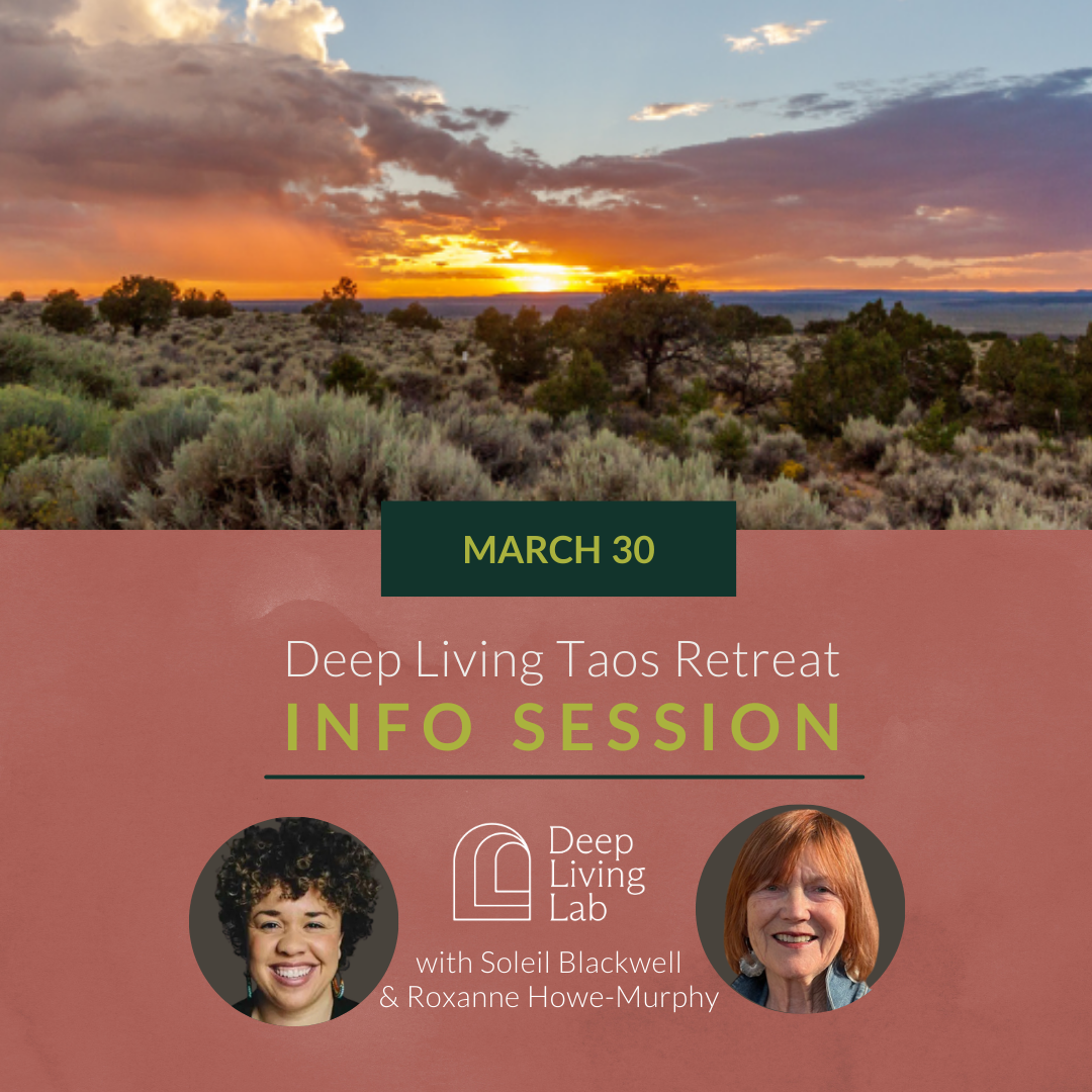 Are you curious about our Deep Living Retreat in Taos, NM, on May 2-5, 2026? Join facilitators Soleil Blackwell and Roxanne Howe-Murphy to hear more about this special in-person gathering and ask any questions.